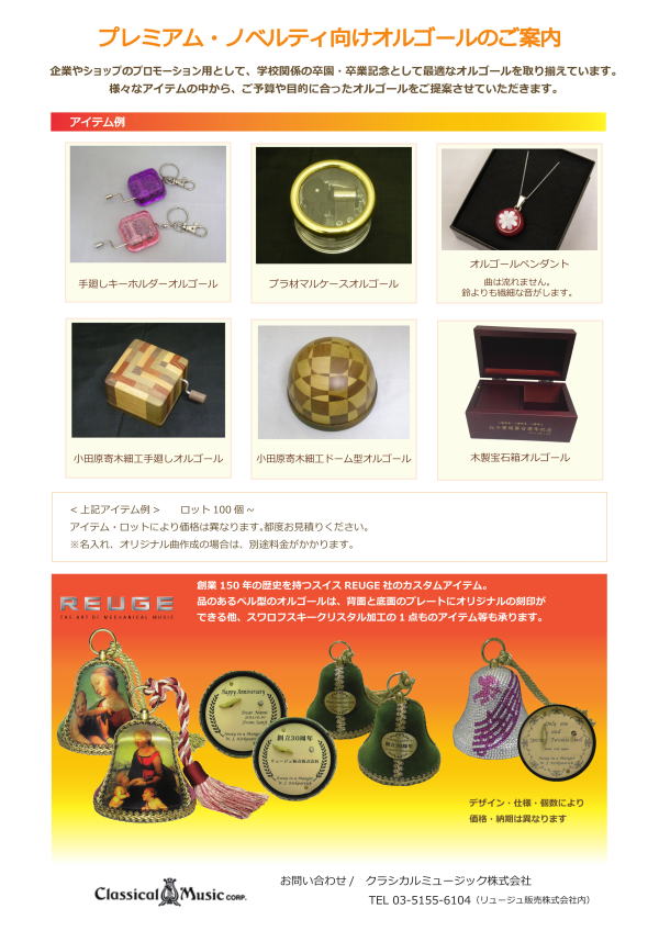 企業様の周年記念品、特別な方への贈り物、プレミアムグッズやノベルティグッズなど、オルゴール全般の